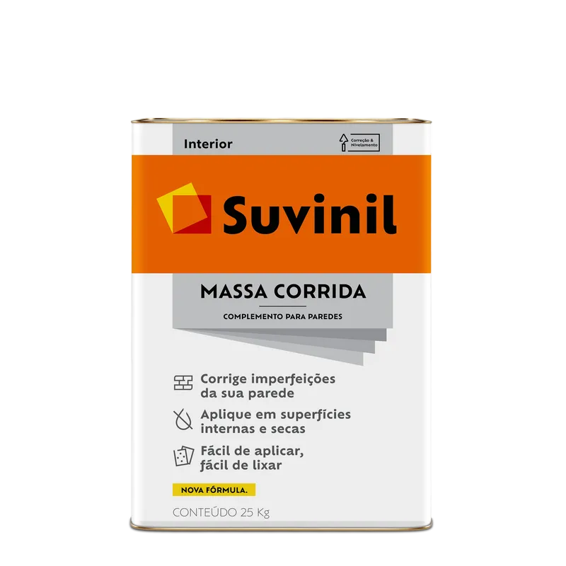 Massa Corrida da Suvinil ajuda a dar um acabamento mais caprichado e a deixar sua parede mais lisa. Indicada para ambientes internos e secos, a massa corrida é fácil de aplicar e de lixar. Ela ainda cria uma camada branca que facilita na hora de pintar. É a massa por trás de uma boa pintura.